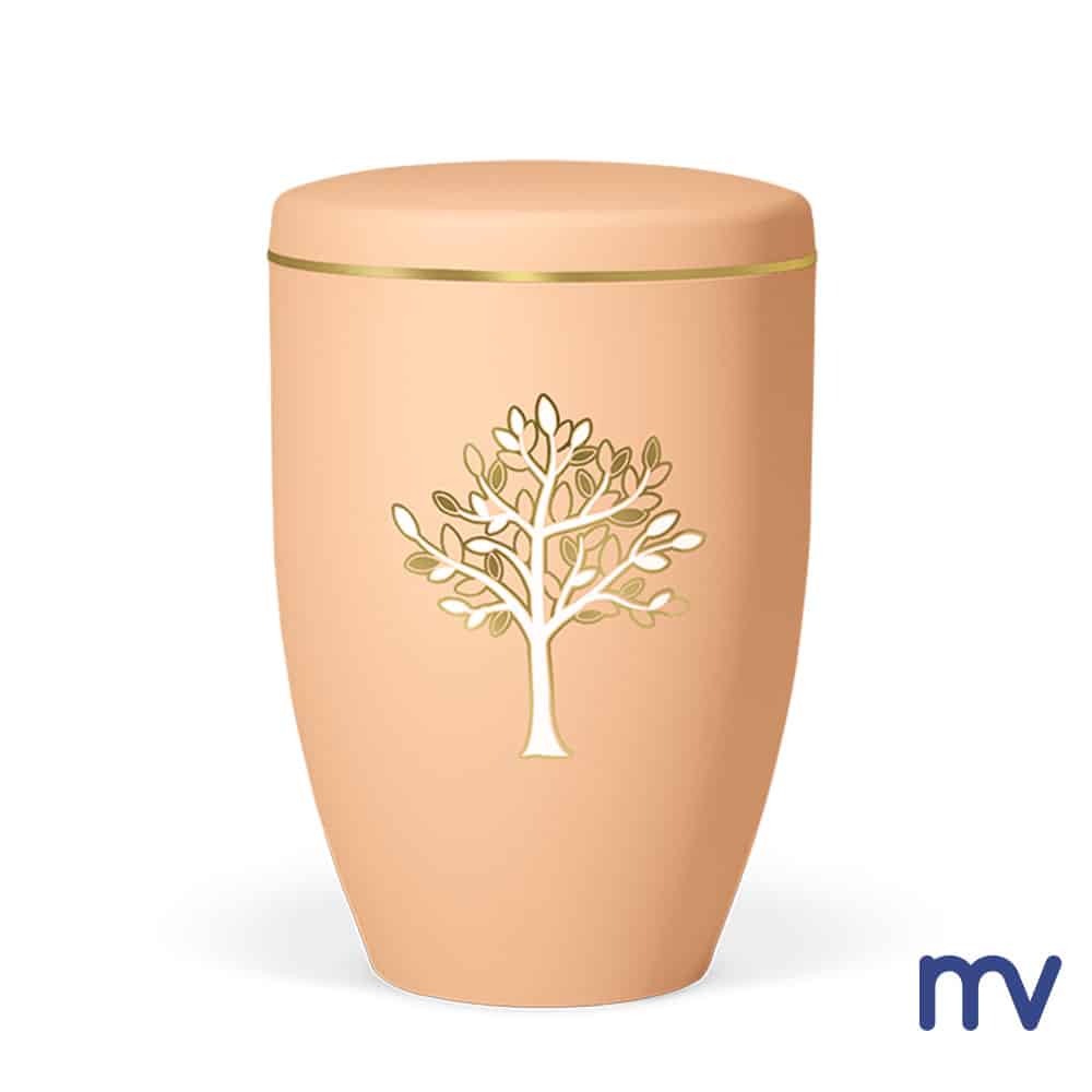 Bio Urne | Ocre orange, arbre or/blanc avec ruban doré