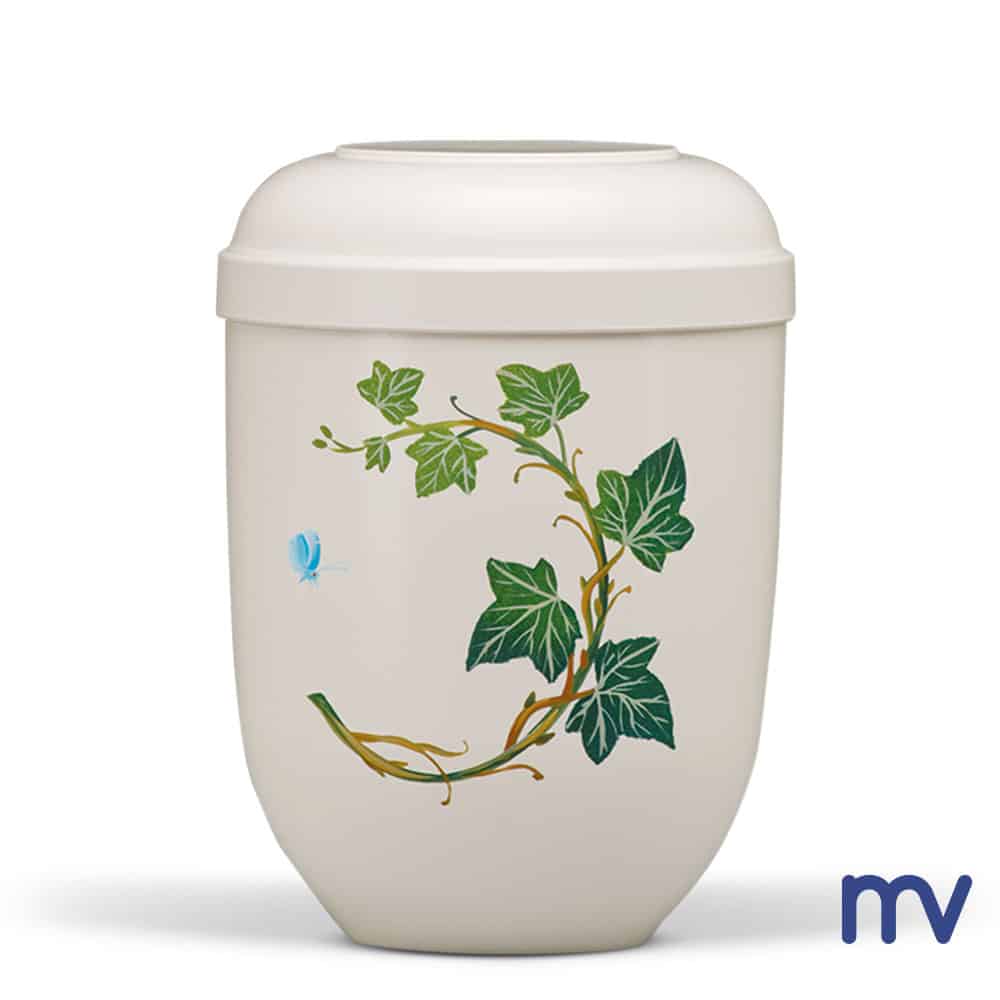 Bio Urne | Crèmewit met de hand beschilderd klimop motief