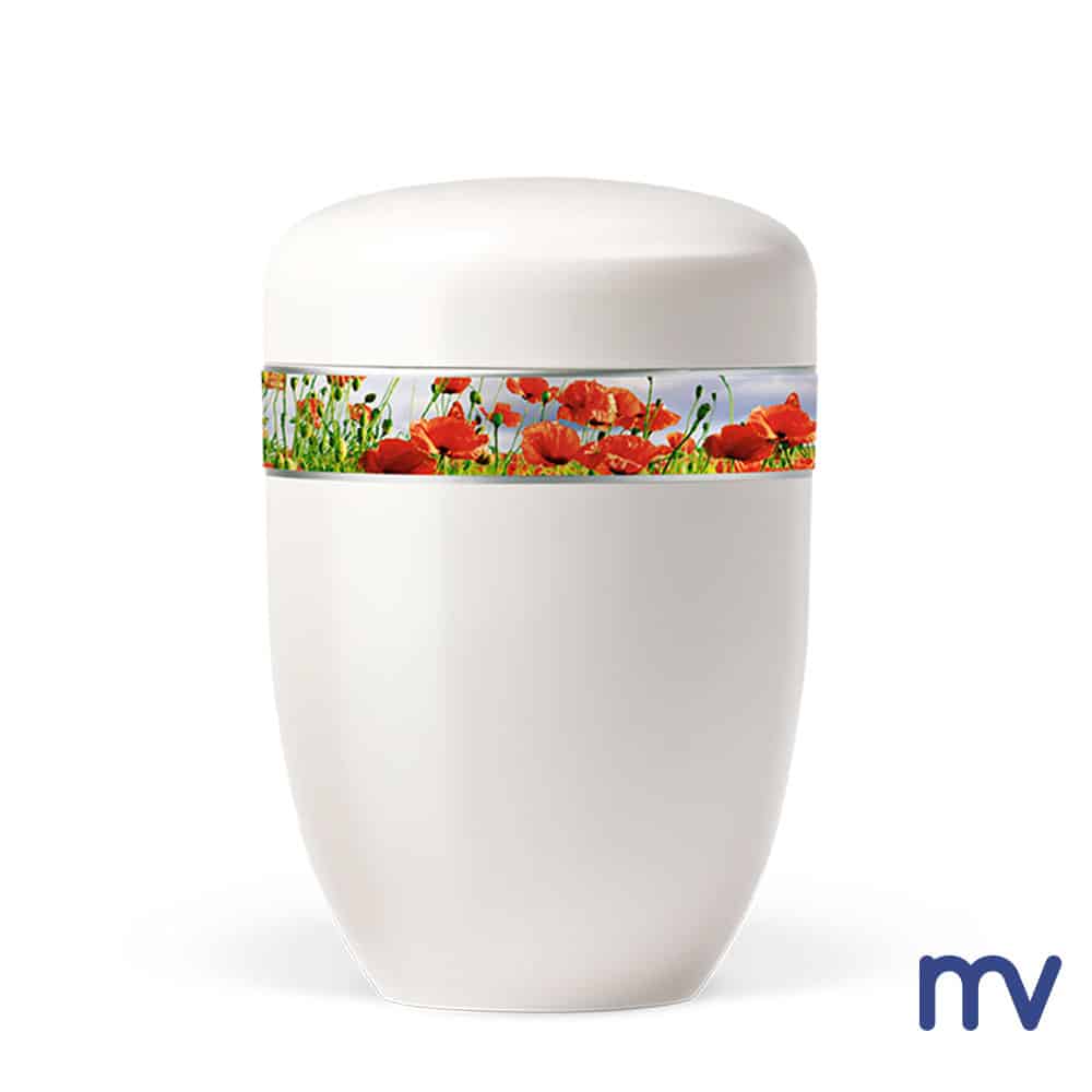 Stalen urne | Crèmewit, decoratieve band klaproos weide